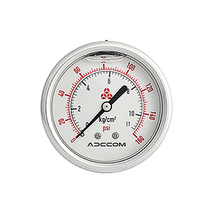 Manómetro con glicerina para instalaciones con vibración, conexión de acero inoxidable.