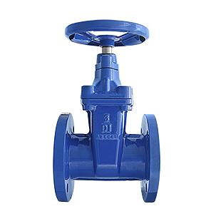 Válvula de compuerta bridada con cuerpo fabricado en hierro dúctil.